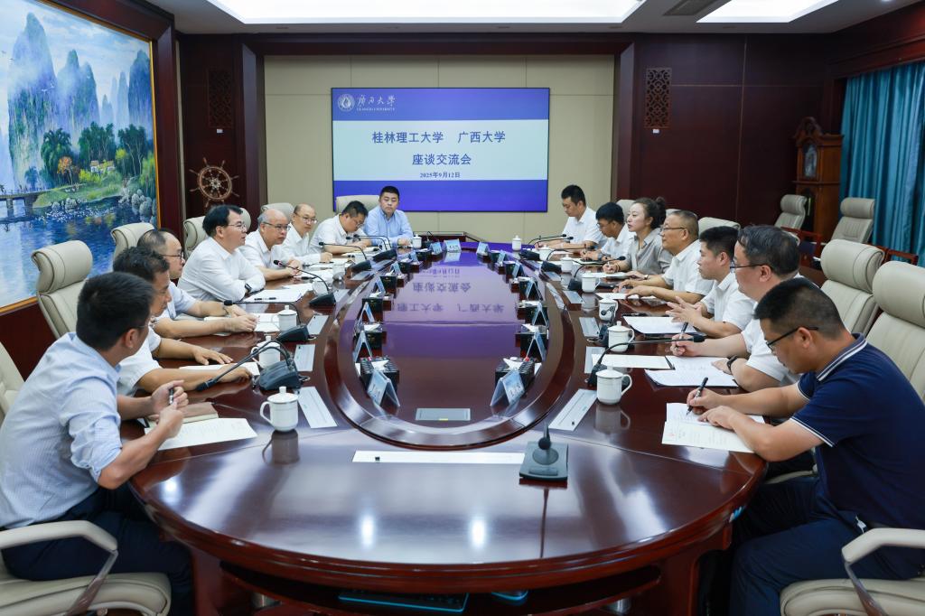 李國忠對(duì)王敦球一行的到來表示熱烈歡迎,并圍繞學(xué)科建設(shè)、人才培養(yǎng)、科研創(chuàng)新等領(lǐng)域,系統(tǒng)分享了廣西大學(xué)在內(nèi)涵式發(fā)展進(jìn)程中的實(shí)踐經(jīng)驗(yàn)與創(chuàng)新舉措。他指出,兩校學(xué)科特色鮮明、優(yōu)勢(shì)互補(bǔ)性強(qiáng),具備深度協(xié)同的堅(jiān)實(shí)基礎(chǔ)。他希望雙方進(jìn)一步強(qiáng)化戰(zhàn)略聯(lián)動(dòng),通過優(yōu)化資源配置、深化協(xié)同創(chuàng)新,將學(xué)科優(yōu)勢(shì)、科研成果切實(shí)轉(zhuǎn)化為推動(dòng)廣西重點(diǎn)產(chǎn)業(yè)轉(zhuǎn)型升級(jí)的核心動(dòng)能,共同書寫校際合作服務(wù)地方發(fā)展的新篇章。