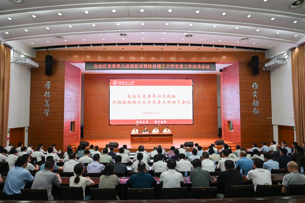 根據(jù)自治區(qū)黨委統(tǒng)一部署,2025年9月23日上午,十二屆自治區(qū)黨委第八輪巡視第六巡視組巡視桂林理工大學(xué)黨委工作動(dòng)員會(huì)召開。自治區(qū)黨委第六巡視組組長(zhǎng)唐青受自治區(qū)黨委巡視工作領(lǐng)導(dǎo)小組委托,就深入學(xué)習(xí)貫徹習(xí)近平總書記重要講話精神,自覺接受巡視監(jiān)督,支持配合本輪巡視工作提出明確要求,并通報(bào)本輪巡視的主要任務(wù)和工作安排。桂林理工大學(xué)黨委書記農(nóng)毅主持會(huì)議并作表態(tài)發(fā)言。