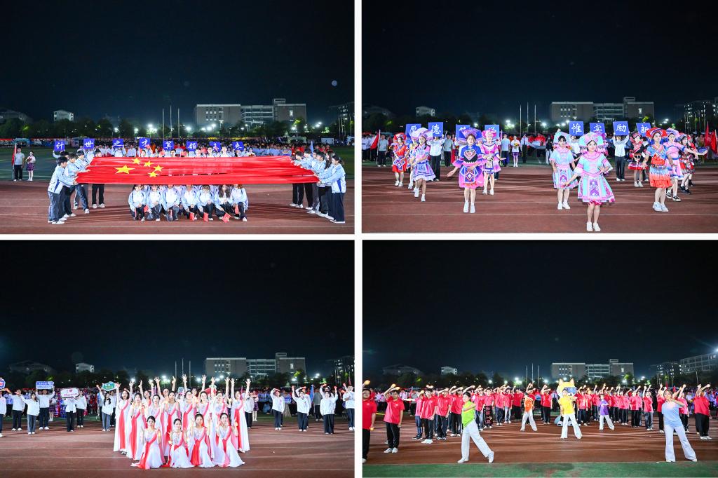 開(kāi)幕式在高亢嘹亮的《運(yùn)動(dòng)員進(jìn)行曲》中拉開(kāi)帷幕。國(guó)旗班方隊(duì)步伐鏗鏘、身姿挺拔,莊嚴(yán)地護(hù)衛(wèi)鮮艷的五星紅旗、校旗、校運(yùn)會(huì)會(huì)旗和會(huì)徽率先入場(chǎng)。緊隨其后的是彩旗隊(duì)與鮮花隊(duì),隊(duì)員們手中彩旗迎風(fēng)招展,絢麗鮮花恣意綻放,他們以昂揚(yáng)的斗志齊聲高呼口號(hào),為運(yùn)動(dòng)健兒們助威喝彩。隨后,裁判員隊(duì)伍及各學(xué)院代表隊(duì)精神飽滿(mǎn)、意氣風(fēng)發(fā)地依次走過(guò)主席臺(tái)。各學(xué)院方陣創(chuàng)意紛呈、各具特色,整齊劃一的步伐與朝氣蓬勃的精神風(fēng)貌,贏得了現(xiàn)場(chǎng)陣陣掌聲,充分展現(xiàn)了全校師生團(tuán)結(jié)進(jìn)取、奮發(fā)向上的活力與激情。