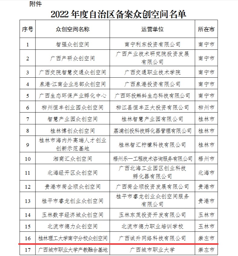 2022年度自治區(qū)備案眾創(chuàng)空間名單