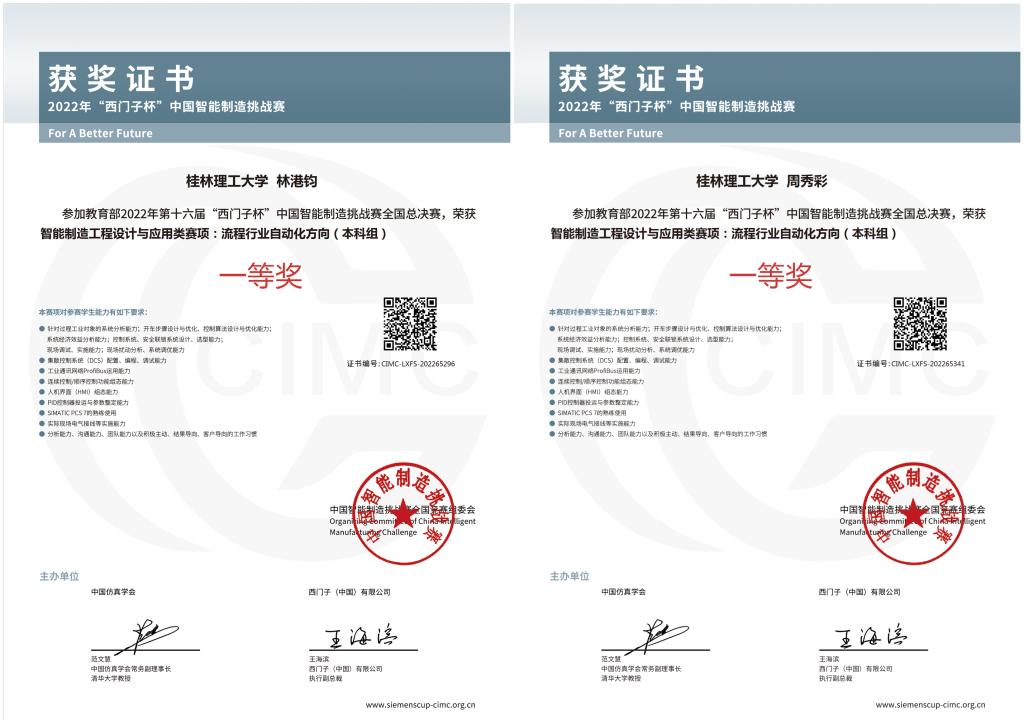 近日,教育部2022年第十六屆CIMC“西門子杯”中國智能制造挑戰(zhàn)賽全國總決賽落下帷幕。結(jié)合當前疫情防控形勢,總決賽采用線上為主的方式進行。經(jīng)過激烈的角逐,我校機械與控制工程學院教師陳明霞、張烈平指導的研究生林港鈞、本科生周秀彩組成的參賽隊伍獲得了智能制造工程設(shè)計與應用類賽項流程行業(yè)自動化方向的全國總決賽一等獎。此外,在全國初賽階段,我校學子還獲得一等獎1項、二等獎6項、三等獎4項的好成績。