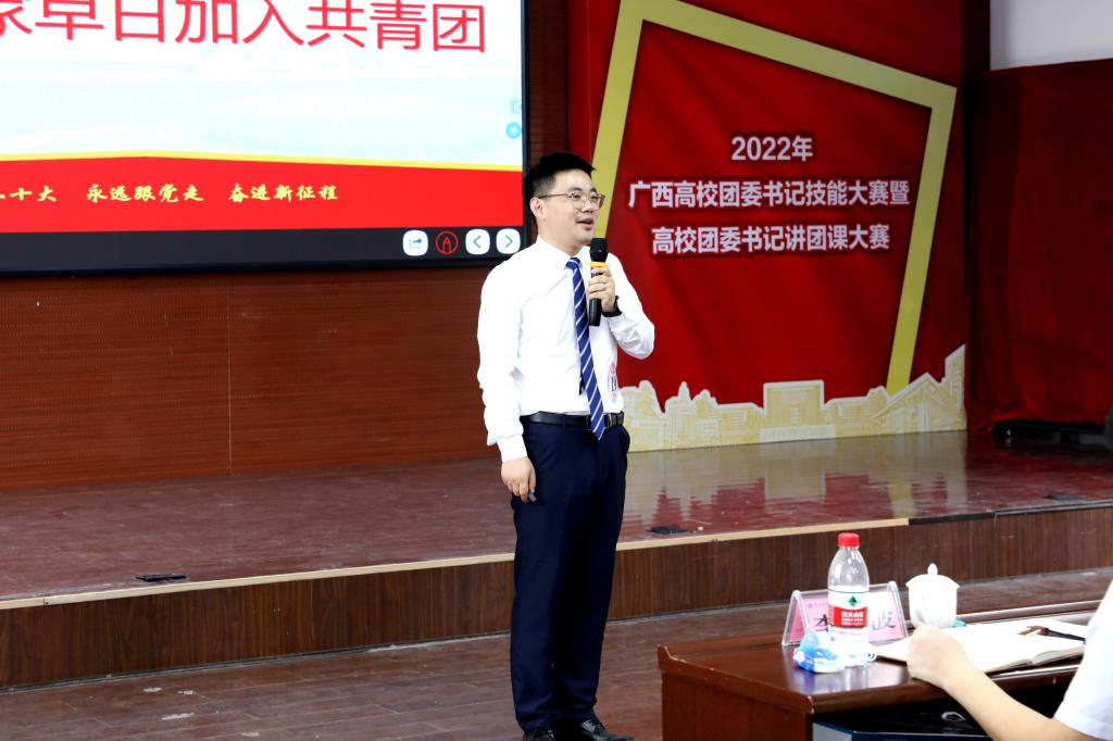 9月28日至29日,由共青團(tuán)廣西區(qū)委主辦、廣西科技大學(xué)承辦的2022年廣西高校團(tuán)委書記技能大賽暨高校團(tuán)委書記講團(tuán)課大賽在柳州市團(tuán)校舉行。本次有來自全區(qū)25個(gè)本科院校和28個(gè)高職高專院校共53名選手參加比賽。我校團(tuán)干吳田波獲得本科組三等獎(jiǎng)。