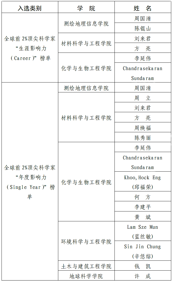 我校入選2022年度“全球前2%頂尖科學(xué)家榜單”名單