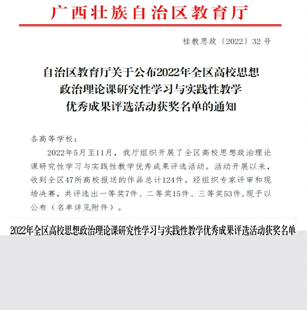 我校在2022年全區(qū)高校思政課研究性學(xué)習(xí)與實(shí)踐性教學(xué)優(yōu)秀成果評(píng)選中喜獲佳績(jī)