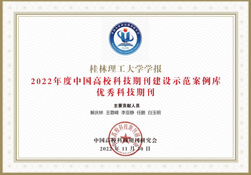 日前,中國高??萍计诳芯繒?huì)公布了2022年度中國高校科技期刊建設(shè)示范案例庫?杰出/百佳/優(yōu)秀科技期刊案例名單。《桂林理工大學(xué)學(xué)報(bào)》榮獲優(yōu)秀科技期刊,解慶林和王蓉嶸等5人為主要貢獻(xiàn)人員。