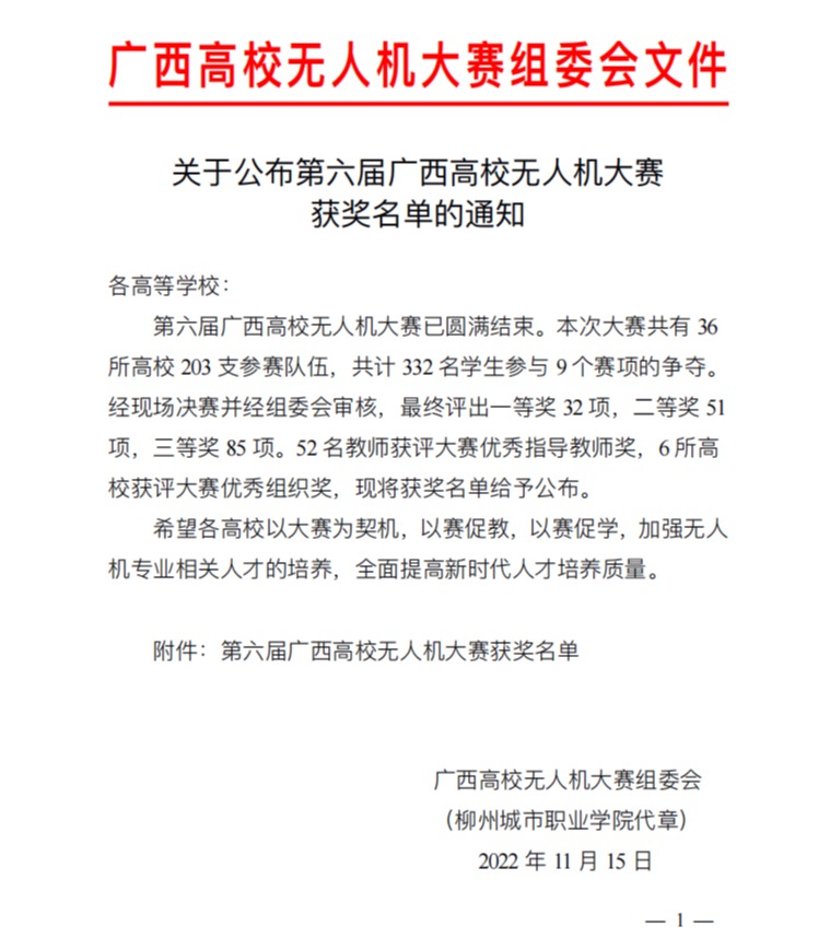 據(jù)悉,本屆大賽共有來自全區(qū)本科、高職共計36所高校的203支參賽隊伍同場競技。大賽設(shè)置了花式表演、應(yīng)急搜尋、航測虛擬仿真等9個賽項,旨在展示廣西高校無人機領(lǐng)域的教學(xué)研究成果和應(yīng)用技術(shù)水平,是促進廣西高校無人機相關(guān)專業(yè)師生相互交流學(xué)習(xí)、共同進步的一次盛會。