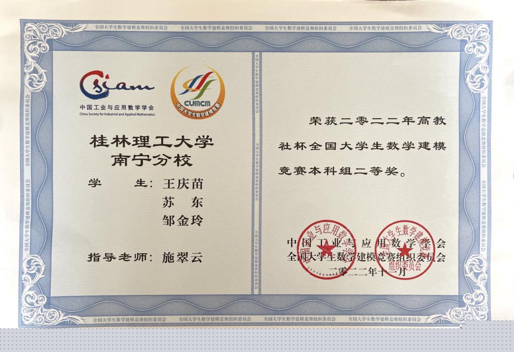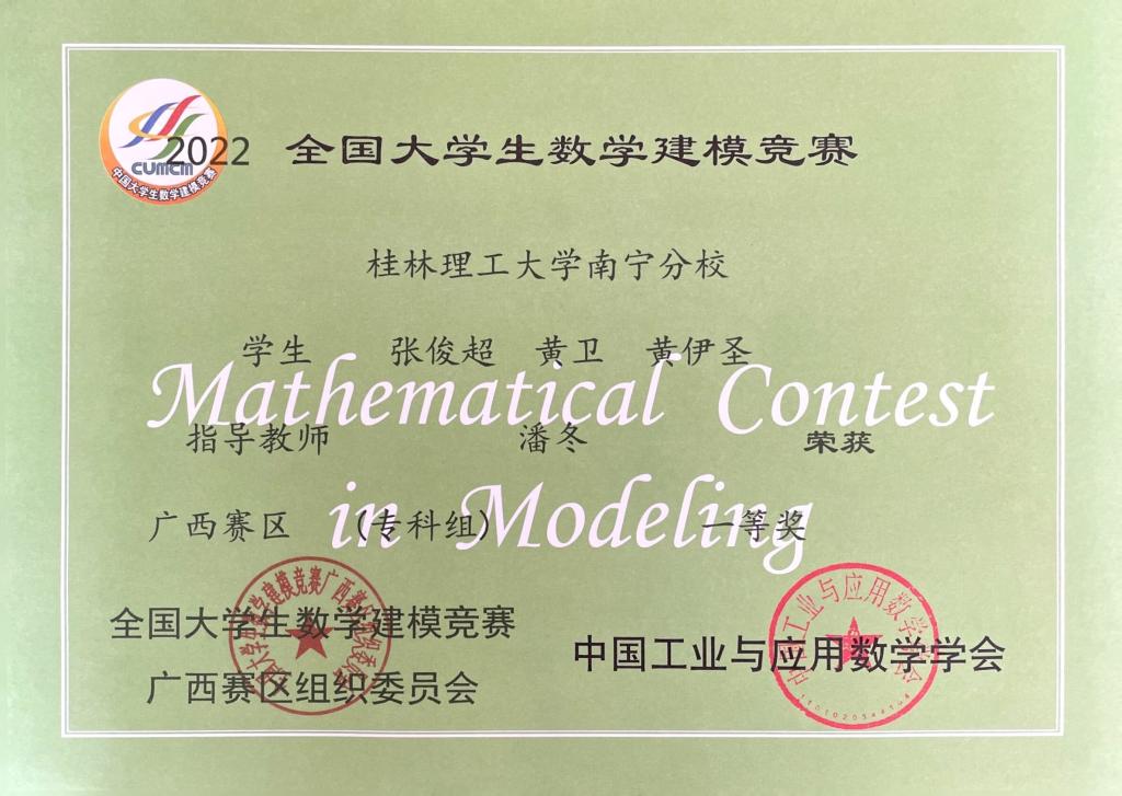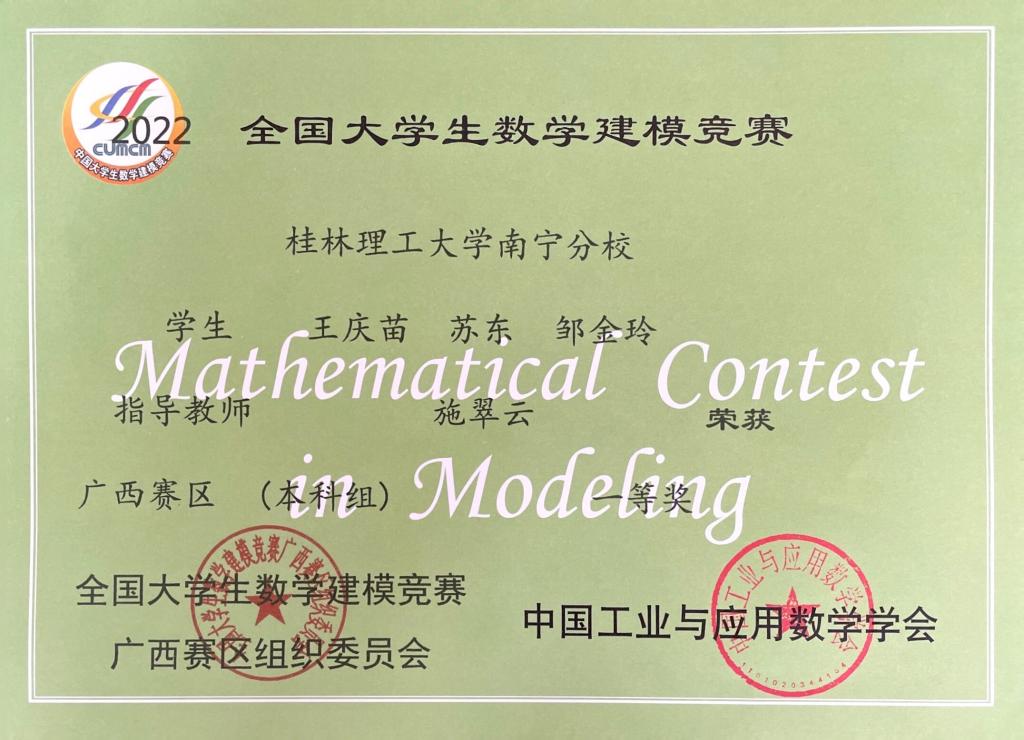南寧分校在2022年全國大學生數(shù)學建模競賽中喜獲佳績