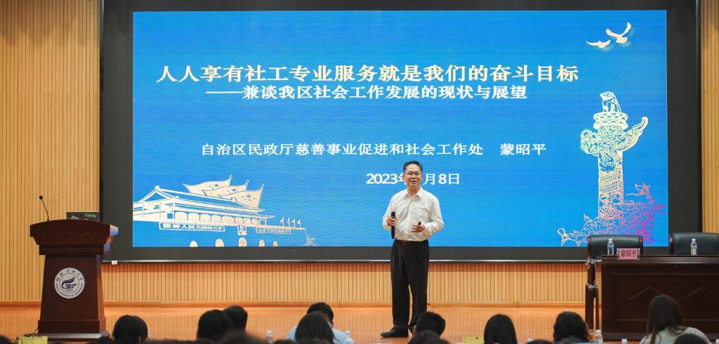 3月9日,自治區(qū)民政廳慈善促進與社會工作處處長蒙昭平、廣西佳和社會工作服務(wù)中心副總干事周小幸、桂林市社會工作促進服務(wù)中心江靜、靈山縣新陽社會工作服務(wù)中心總干事陸林峰到我校進行了社會工作主題宣講活動。桂林市民政局黨組成員、副局長趙艷春等地方主管部門領(lǐng)導(dǎo)陪同。我校相關(guān)專業(yè)師生參加了本次宣講。