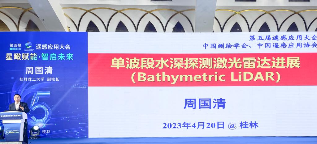 周國(guó)清教授在報(bào)告中對(duì)參會(huì)學(xué)者表示熱烈歡迎,對(duì)中國(guó)測(cè)繪學(xué)會(huì)對(duì)地觀測(cè)工作委員會(huì)給予我校的支持與信任表示衷心感謝,并作“單波段激光雷達(dá)進(jìn)展研究”主題報(bào)告。報(bào)告重點(diǎn)介紹了周國(guó)清教授激光雷達(dá)團(tuán)隊(duì)在海洋測(cè)深方面的技術(shù)應(yīng)用和成果,并對(duì)單波段激光雷達(dá)海洋應(yīng)用的未來(lái)發(fā)展前景進(jìn)行展望。