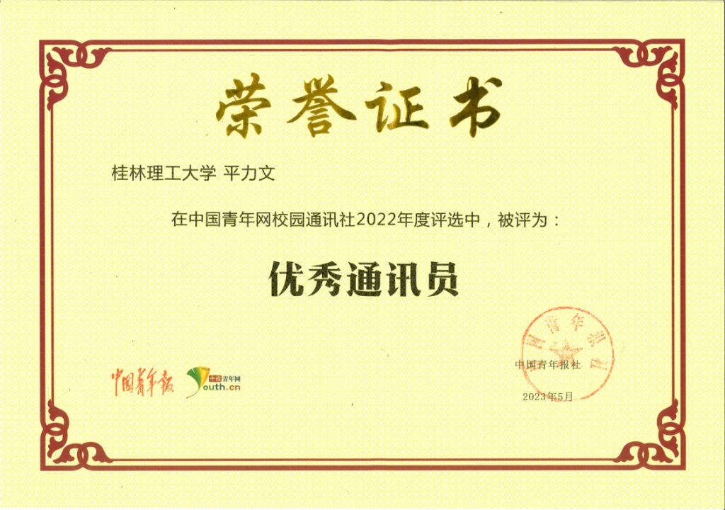 我校學(xué)子平力文獲評(píng)2022年度“優(yōu)秀通訊員”
