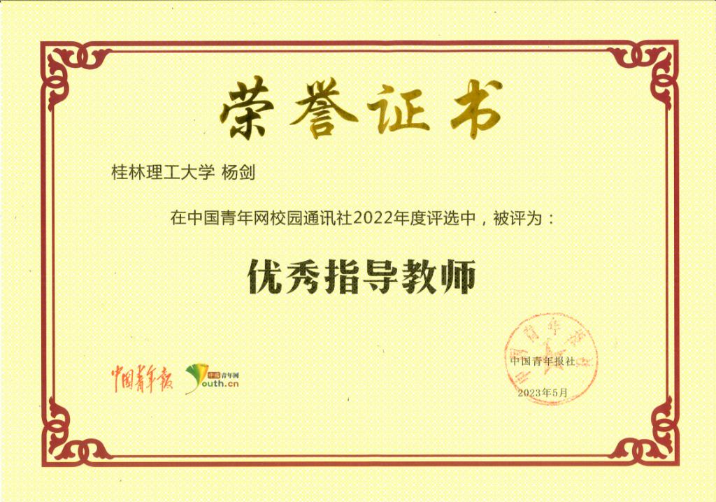 我校教師楊劍獲評(píng)2022年度“優(yōu)秀指導(dǎo)教師”