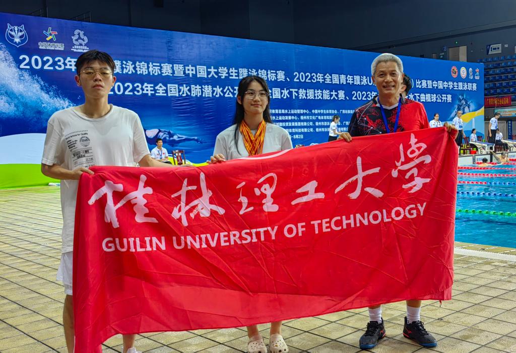 我校首次派出學生參加全國蹼泳錦標賽,他們與全國眾多高手同臺競技,不畏強敵,較好地發(fā)揮了技術(shù)水平,展現(xiàn)了桂工學子不怕苦的精神風貌,彰顯青年一代應有的闖勁、銳氣和擔當。