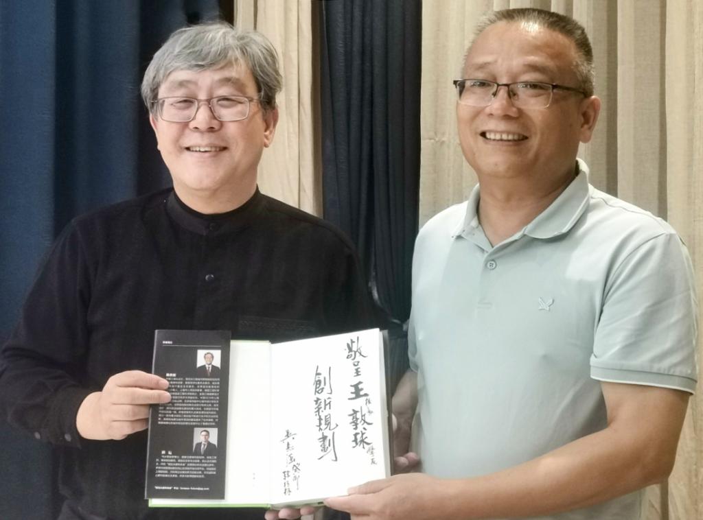 王敦球校長(zhǎng)熱情接待吳志強(qiáng)院士一行,吳志強(qiáng)院士為王敦球校長(zhǎng)贈(zèng)書