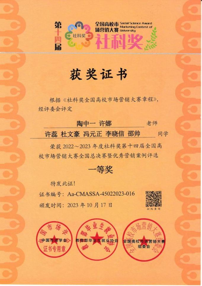 南寧分校學(xué)子在社科獎第十四屆全國高校市場營銷大賽全國總決賽中榮獲一等獎