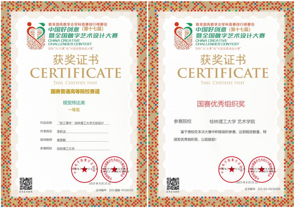 日前,第十七屆中國好創(chuàng)意暨全國數(shù)字藝術設計大賽國賽結果揭曉,我校藝術學院學子在比賽中喜獲佳績,由徐云、孫阿強老師指導的學生作品《洛鯨香薰品牌文創(chuàng)產(chǎn)品設計》,朱文霜老師指導的學生作品《覓?境龍脊梯田文化博物館設計方案》,秦慧敏老師指導的學生作品《“桂工青年”桂林理工大學文創(chuàng)設計》等3件作品榮獲一等獎,其他指導組1件作品獲二等獎,3件作品獲三等獎,我校藝術學院獲國賽優(yōu)秀組織獎。