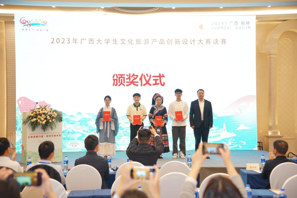 11月26日,由廣西壯族自治區(qū)教育廳主辦,廣西文化和旅游策劃規(guī)劃設(shè)計(jì)協(xié)會(huì)、桂林理工大學(xué)旅游與風(fēng)景園林學(xué)院、廣西本科高校旅游管理教學(xué)指導(dǎo)委員會(huì)、廣西旅游產(chǎn)業(yè)研究院、廣西北部灣文化和旅游發(fā)展研究院聯(lián)合承辦的2023年廣西大學(xué)生文化旅游產(chǎn)品創(chuàng)新設(shè)計(jì)大賽現(xiàn)場(chǎng)決賽在桂林成功舉行。我校黨委常委、副校長(zhǎng)羅盛鋒教授出席大賽閉幕式,并與評(píng)委專家一同為獲獎(jiǎng)隊(duì)伍頒獎(jiǎng)。