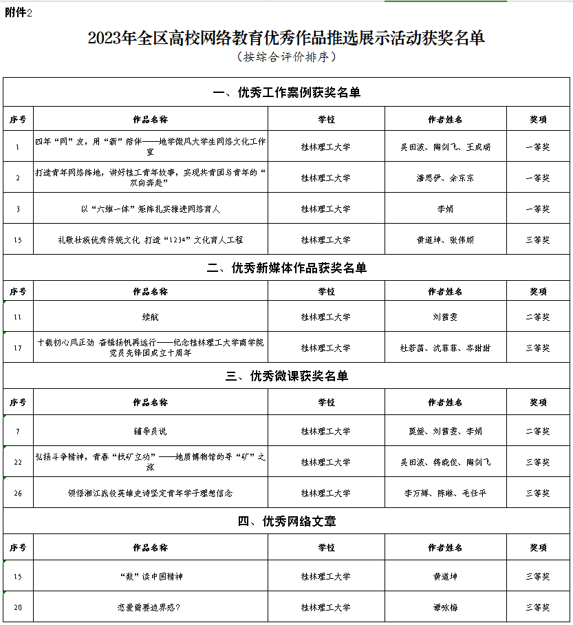 2023年全區(qū)高校網(wǎng)絡(luò)教育優(yōu)秀作品推選展示活動(dòng)獲獎(jiǎng)作品