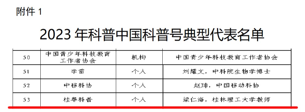 我校梁仁海老師個人運營的科普號“桂粵科普”入選“2023年科普中國科普號典型代表”名單
