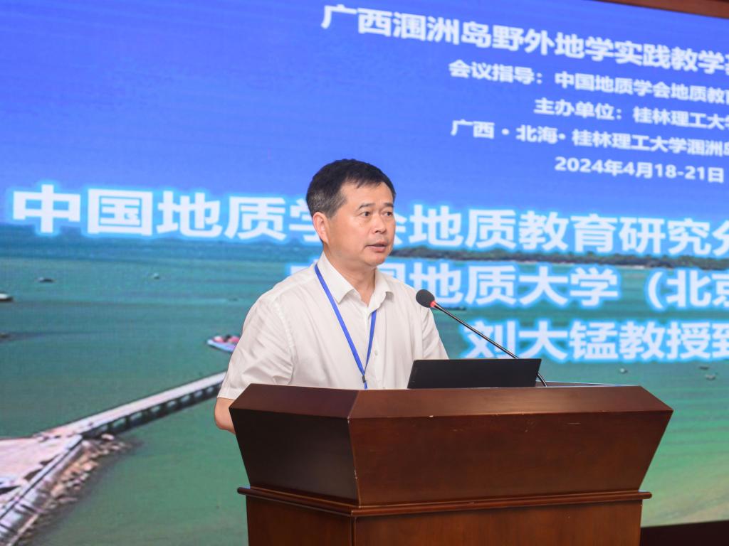 中國地質(zhì)大學(xué)(北京)副校長、中國地質(zhì)學(xué)會地質(zhì)教育研究分會副主任兼秘書長劉大錳教授在開幕式致辭