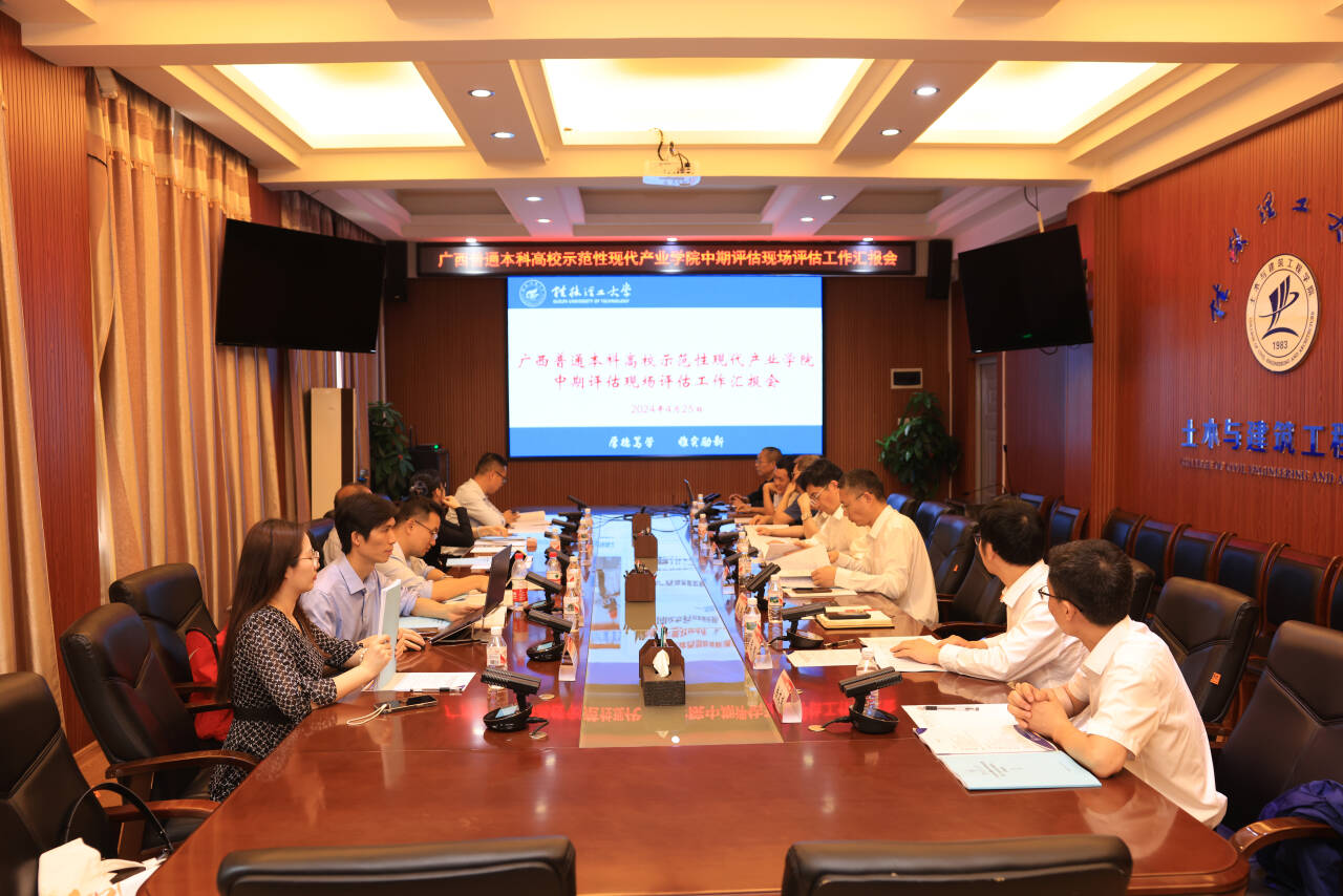 4月25日,廣西普通本科高校示范性現(xiàn)代產(chǎn)業(yè)學(xué)院中期評估專家組第四組組長、廣西民族大學(xué)黨委常委、副校長姜明國,專家組第五組組長、廣西中醫(yī)藥大學(xué)黨委常委、副校長鐘宏桃一行蒞臨我校開展自治區(qū)級示范性現(xiàn)代產(chǎn)業(yè)學(xué)院中期評估。學(xué)校黨委常委、副校長王磊出席中期評估會議?,F(xiàn)代產(chǎn)業(yè)學(xué)院負(fù)責(zé)人、本科生院相關(guān)負(fù)責(zé)人參會。