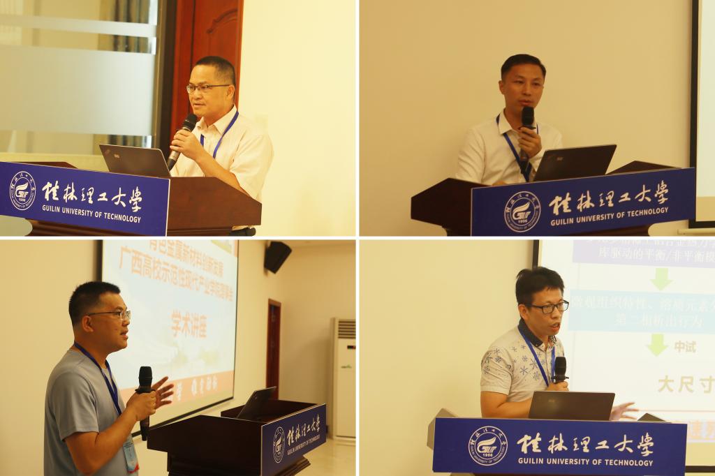 在產業(yè)學院建設發(fā)展研討會上,廣西南南鋁加工有限公司熱軋技術站站長兼船舶材料研究所副所長趙啟忠、廣西特鋼新材料重點實驗室主任及廣西北港新材料有限公司技術中心副主任黃學忠、中國有色桂林礦產地質研究院有限公司生態(tài)環(huán)境研究所固廢處理中心主任馮吉福和我校材料科學與工程學院教授喻亮四位專家分別作了題為《海洋工程用耐蝕5系鋁合金板材制備技術研究》《在線軋退洗一體化生產高品質不銹鋼帶關鍵共性技術研發(fā)應用》《廣西某低品位氧化鋅礦浮選研究》和《雙聯通結構Al2O33D/Al復合材料的耐磨及耐蝕性能》的學術報告。