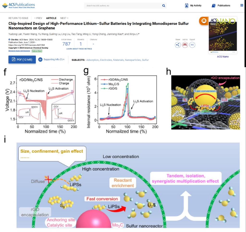 近期,我校物理與電子信息工程學(xué)院李新宇研究員、肖劍榮教授團(tuán)隊(duì)在鋰硫電池研究領(lǐng)域取得重要研究成果,分別在國(guó)際頂刊《Angewandte Chemie International Edition》(中科院一區(qū)TOP,影響因子16.1)、《ACS Nano》(中科院一區(qū)TOP,影響因子15.8)、《ACS Sustainable Chemistry & Engineering》(中科院一區(qū)TOP,影響因子7.1)上發(fā)表了有關(guān)集成納米反應(yīng)器等在鋰硫電池陰極中應(yīng)用探索的最新研究成果,研究為物理學(xué)、材料學(xué)、化學(xué)、納米技術(shù)等不同學(xué)科研究前沿的交叉融合。(全文鏈接:https://doi.org/10.1002/anie.202406693;https://doi.org/10.1021/acsnano.4c01264;https://doi.org/10.1021/acssuschemeng.4c02312)