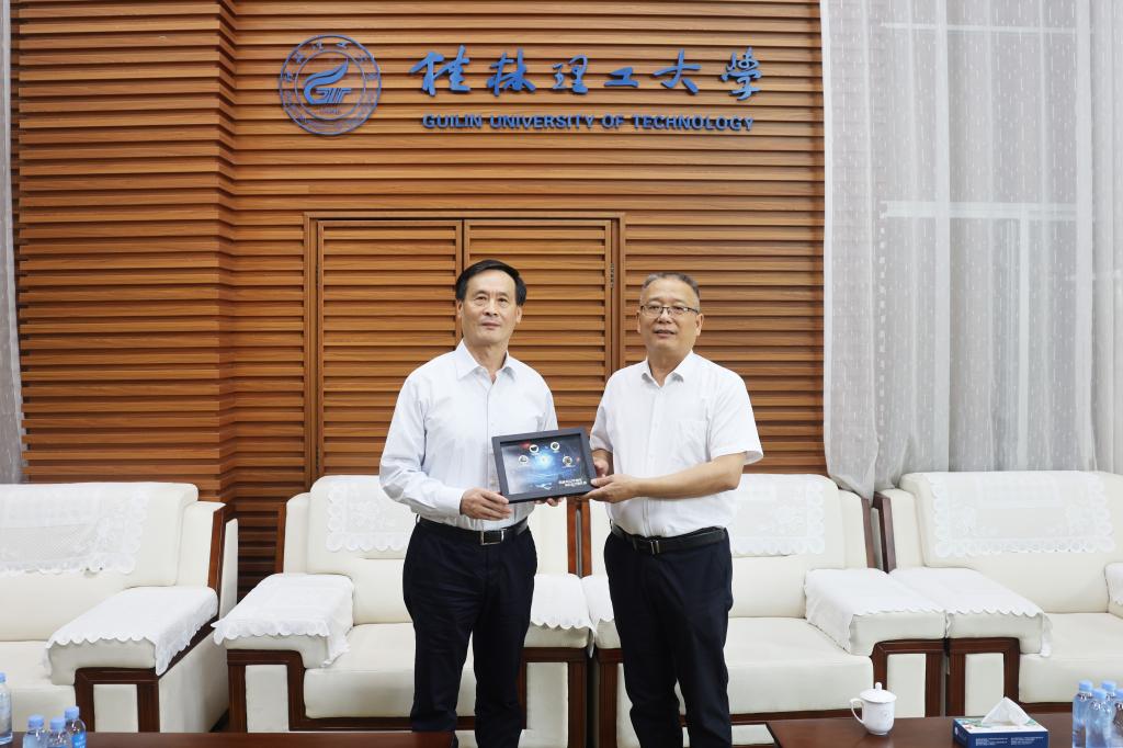 王敦球校長向胡曙光教授贈送桂林理工大學(xué)聯(lián)名隕石套裝