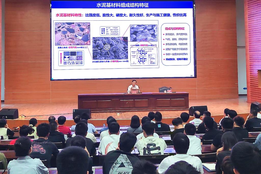 報告會上,胡曙光教授結(jié)合自身的實踐經(jīng)驗和研究成果,理論聯(lián)系實際,從傳統(tǒng)水泥材料面臨的突出問題與挑戰(zhàn)、先進水泥基復(fù)合材料的創(chuàng)新與發(fā)展兩方面進行系統(tǒng)解讀,重點介紹了創(chuàng)新水泥基材料組成復(fù)合技術(shù)、創(chuàng)新混凝土材料結(jié)構(gòu)復(fù)合技術(shù)和創(chuàng)新膠凝材料復(fù)合制備技術(shù)及其在我國重大重點工程應(yīng)用中取得的重要成果。