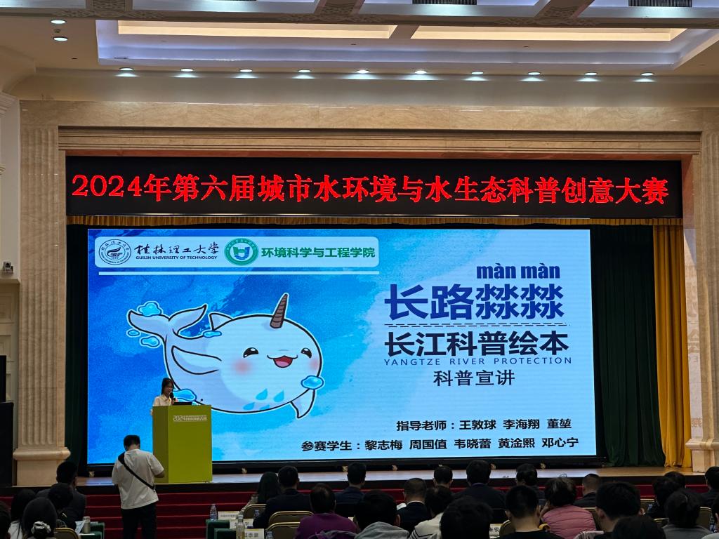 本次大賽決賽共收到數(shù)百份參賽作品,經(jīng)過(guò)組委會(huì)專家組的初評(píng)、會(huì)評(píng)、復(fù)評(píng)層層篩選,最終評(píng)選出16支參賽隊(duì)伍進(jìn)入決賽。我校參賽作品《長(zhǎng)路“??”》繪本主要講述了長(zhǎng)江精靈“??”與魚兒們?cè)谟螝v長(zhǎng)江的過(guò)程中,學(xué)習(xí)長(zhǎng)江生態(tài)知識(shí)并呼吁保護(hù)長(zhǎng)江的故事。在現(xiàn)場(chǎng)展示環(huán)節(jié)中,參賽隊(duì)員沉著冷靜、機(jī)智應(yīng)對(duì),充分展現(xiàn)了桂工學(xué)子良好的精神風(fēng)貌和專業(yè)素養(yǎng)。