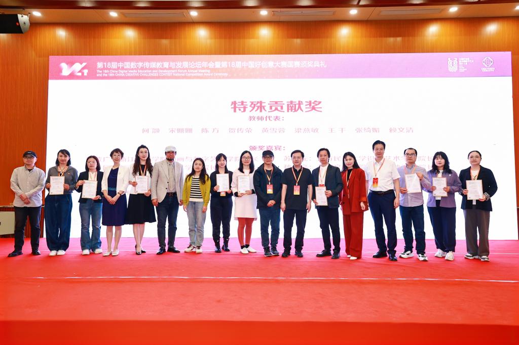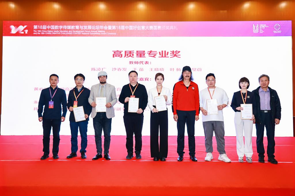 在頒獎(jiǎng)典禮上,與會嘉賓分別為學(xué)生組一二三等獎(jiǎng)、特殊貢獻(xiàn)獎(jiǎng)、教師組獎(jiǎng)、優(yōu)秀指導(dǎo)教師獎(jiǎng)、高質(zhì)量專業(yè)獎(jiǎng)、突出貢獻(xiàn)獎(jiǎng)等獲得者頒發(fā)了證書,部分獲獎(jiǎng)優(yōu)秀作品在典禮上進(jìn)行創(chuàng)作分享,與會專家進(jìn)行了現(xiàn)場點(diǎn)評。