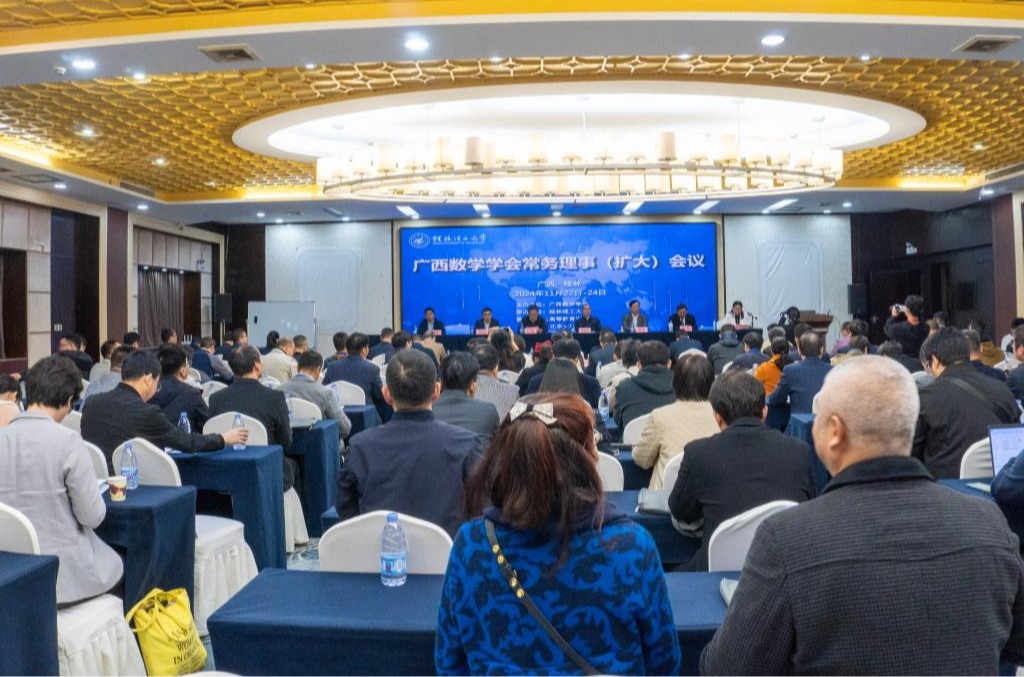11月22日至24日,由廣西數(shù)學(xué)學(xué)會主辦、我校承辦的“2024年廣西數(shù)學(xué)學(xué)會常務(wù)理事(擴大)會議”在桂林召開。我校黨委副書記吳志強出席開幕式并致歡迎辭。廣西數(shù)學(xué)學(xué)會理事長、北部灣大學(xué)黨委副書記唐高華教授,國家級教學(xué)名師、廈門大學(xué)譚忠教授,廣東省數(shù)學(xué)學(xué)會理事長、廣東省運籌學(xué)會理事長、中山大學(xué)姚正安教授等多位教育界領(lǐng)導(dǎo)及專家學(xué)者受邀出席,來自全區(qū)多所高校的專家學(xué)者160余人參會。