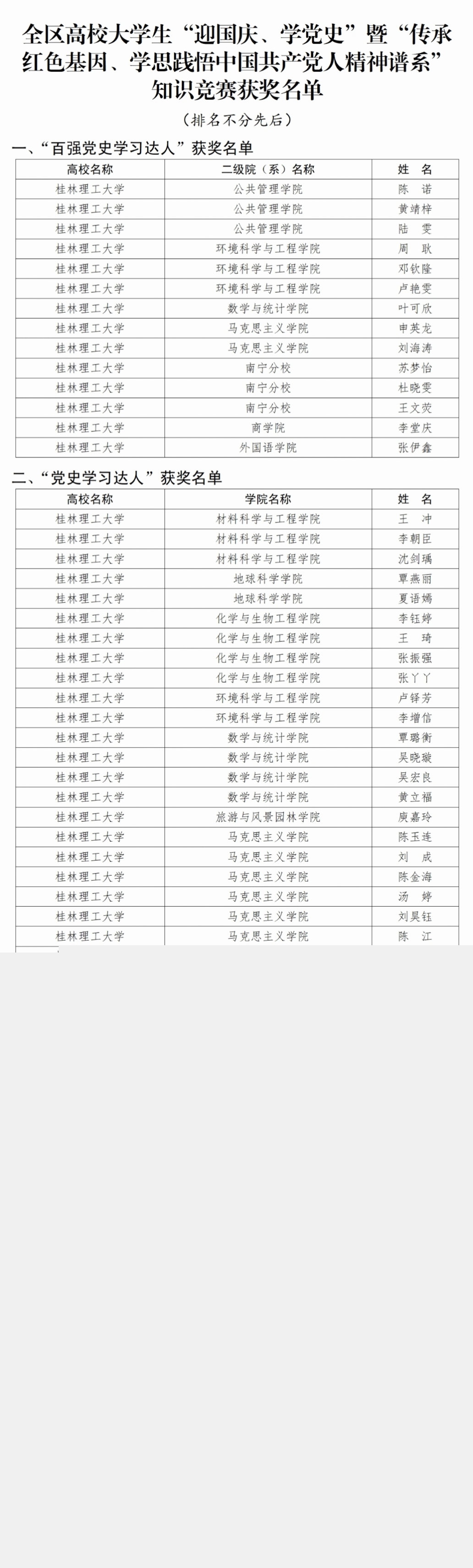 學(xué)校高度重視此次知識(shí)競(jìng)賽,第一時(shí)間形成工作方案,依托微信公眾號(hào)、成長(zhǎng)成才教育課等平臺(tái)實(shí)現(xiàn)線上線下同步宣傳,并組織全校在校生提前學(xué)習(xí)中國(guó)共產(chǎn)黨歷史、中國(guó)共產(chǎn)黨廣西歷史、中國(guó)共產(chǎn)黨人精神譜系等相關(guān)知識(shí)。下一步,學(xué)校將鞏固此次答題成果,貫徹落實(shí)好《黨史學(xué)習(xí)教育工作條例》,深入實(shí)施時(shí)代新人鑄魂工程,扎實(shí)開(kāi)展“傳承紅色基因、學(xué)思踐悟中國(guó)共產(chǎn)黨人精神譜系”宣傳教育,推動(dòng)黨史學(xué)習(xí)教育常態(tài)化長(zhǎng)效化,教育引導(dǎo)廣大學(xué)生知史愛(ài)黨、知史愛(ài)國(guó),成為堪當(dāng)民族復(fù)興重任的時(shí)代新人。