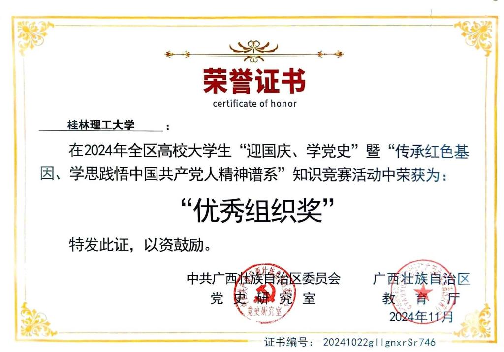 近日,由自治區(qū)黨委黨史研究室和自治區(qū)教育廳聯(lián)合主辦的“迎國(guó)慶、學(xué)黨史”暨“傳承紅色基因、學(xué)思踐悟中國(guó)共產(chǎn)黨人精神譜系”知識(shí)競(jìng)賽活動(dòng)圓滿結(jié)束。我校14名學(xué)生獲評(píng)“百?gòu)?qiáng)黨史學(xué)習(xí)達(dá)人”,53名學(xué)生獲評(píng)“黨史學(xué)習(xí)達(dá)人”,學(xué)校獲評(píng)“優(yōu)秀組織獎(jiǎng)”。
