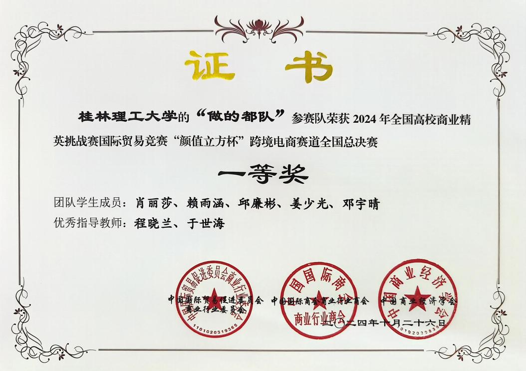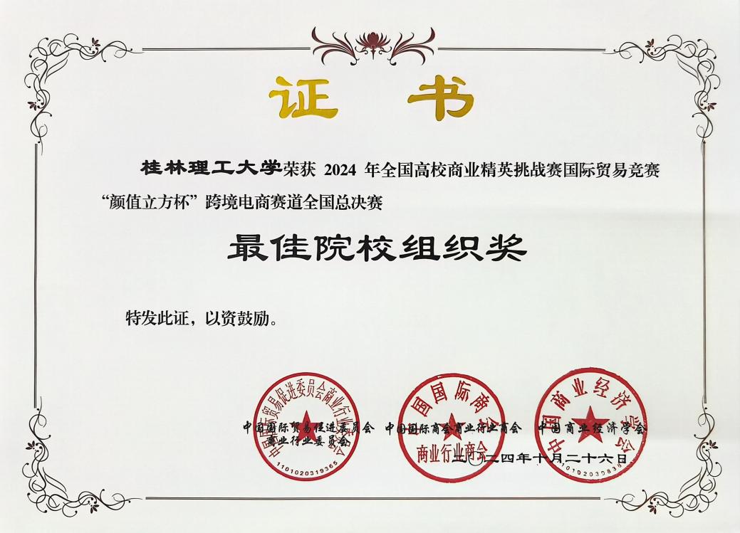 近日,由中國(guó)國(guó)際貿(mào)易促進(jìn)委員會(huì)商業(yè)行業(yè)委員會(huì)、中國(guó)國(guó)際商會(huì)商業(yè)行業(yè)商會(huì)、中國(guó)商業(yè)經(jīng)濟(jì)學(xué)會(huì)主辦,中國(guó)國(guó)際貿(mào)易促進(jìn)委員會(huì)商業(yè)行業(yè)委員會(huì)、顏值立方(廈門)產(chǎn)教融合科技集團(tuán)有限責(zé)任公司承辦的2024年全國(guó)高校商業(yè)精英挑戰(zhàn)賽國(guó)際貿(mào)易競(jìng)賽“顏值立方杯”跨境電商賽道成功舉辦。經(jīng)過激烈角逐,我校參賽隊(duì)伍在全國(guó)總決賽中獲得一等獎(jiǎng)2項(xiàng)、二等獎(jiǎng)12項(xiàng),學(xué)校獲最佳院校組織獎(jiǎng)。