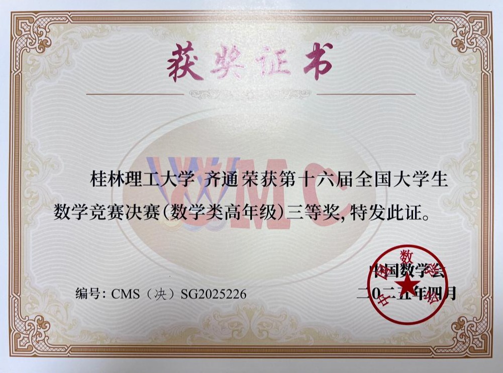 近日,第十六屆全國大學生數(shù)學競賽決賽在浙江師范大學圓滿落幕。我校共榮獲區(qū)級及以上獎項58項,其中,我校數(shù)學專業(yè)類學生獲國家級三等獎1項,區(qū)級一等獎4項、二等獎2項、三等獎4項,非數(shù)學專業(yè)類學生獲區(qū)級一等獎9項、二等獎21項、三等獎17項。