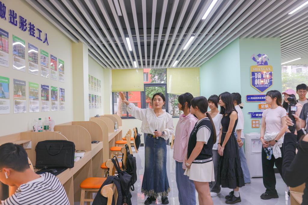 走進(jìn)“一站式”學(xué)生社區(qū),24小時(shí)自習(xí)室的燈火與共享廚房的香氣交織成獨(dú)特的校園畫卷。窗明幾凈的考研自習(xí)室里,桂工學(xué)子專注學(xué)習(xí)的身影,展現(xiàn)出濃厚的求知氛圍;職業(yè)規(guī)劃中心內(nèi),豐富的就業(yè)指導(dǎo)資料與專業(yè)測評(píng)設(shè)備,彰顯學(xué)校對(duì)學(xué)生發(fā)展的全方位支持;共享廚房中,鍋碗瓢盆碰撞出生活的韻律,烘焙香氣傳遞出家的溫暖。交流團(tuán)成員紛紛用鏡頭記錄下這些場景,感慨這里既有濃厚的學(xué)習(xí)氛圍,又充滿“煙火氣”與“家文化”。