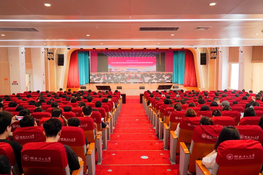 6月21日上午,我校在雁山校區(qū)新體育館舉行2026屆畢業(yè)生就業(yè)啟動(dòng)儀式暨就業(yè)指導(dǎo)報(bào)告會(huì)。學(xué)校黨委常委、副校長(zhǎng)唐壯東出席報(bào)告會(huì)并作就業(yè)動(dòng)員講話。桂林市相關(guān)部門領(lǐng)導(dǎo)專家應(yīng)邀為我校2026屆畢業(yè)生作政策解讀和就業(yè)指導(dǎo)。學(xué)校學(xué)工部(處)、研工部、校團(tuán)委主要負(fù)責(zé)人,各二級(jí)學(xué)院黨委副書記、2026屆畢業(yè)班輔導(dǎo)員、2026屆畢業(yè)生代表參加會(huì)議。屏風(fēng)校區(qū)設(shè)視頻分會(huì)場(chǎng)。
