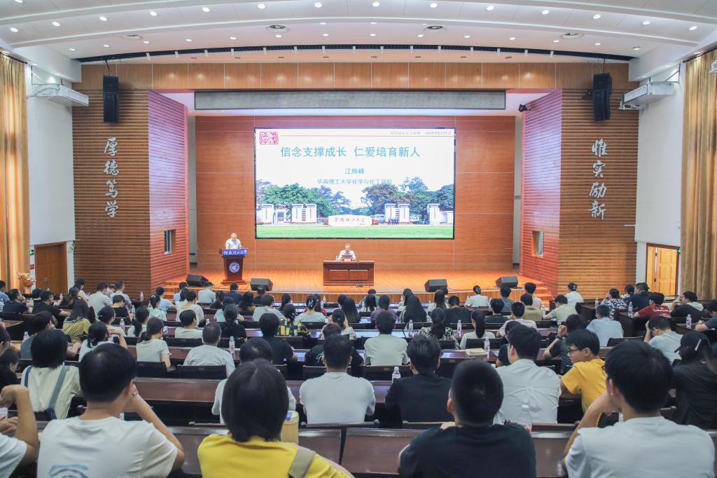 華南理工大學(xué)化學(xué)與化工學(xué)院江煥峰教授以“信念支撐成長 仁愛培育新人”為題作報(bào)告