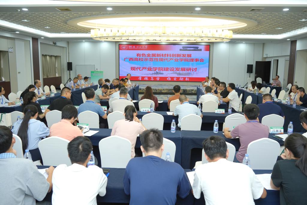10月18日,我校舉辦有色金屬新材料創(chuàng)新發(fā)展廣西高校示范性現(xiàn)代產(chǎn)業(yè)學(xué)院(以下簡(jiǎn)稱“現(xiàn)代產(chǎn)業(yè)學(xué)院”)第三屆理事會(huì)暨產(chǎn)業(yè)學(xué)院建設(shè)發(fā)展研討會(huì)。學(xué)校黨委副書記黎貞崇出席會(huì)議并致辭。來(lái)自區(qū)內(nèi)外22家相關(guān)企業(yè)領(lǐng)導(dǎo)、專家,我校本科生院、材料科學(xué)與工程學(xué)院、化學(xué)與生物工程學(xué)院主要負(fù)責(zé)人及現(xiàn)代產(chǎn)業(yè)學(xué)院師生代表共同參會(huì)。