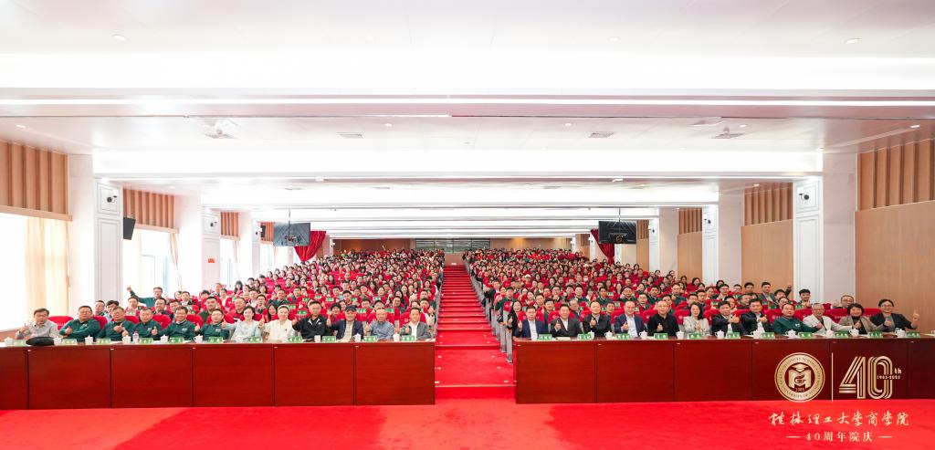 曾繁榮代表學校向商學院建院40周年表示熱烈祝賀,充分肯定商學院40年辦學成就。他希望,商學院胸懷“國之大者”,在服務中國式現(xiàn)代化與壯美廣西建設中彰顯擔當;希望教師爭做“大先生”,培養(yǎng)更多引領未來的復合型人才;希望同學們砥礪奮進,將“小我”融入“大我”;希望校友永葆赤子情懷,?;丶铱纯?,為母校發(fā)展匯聚力量。