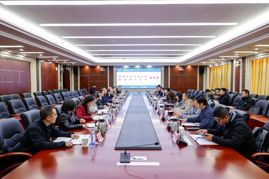 11月20日上午,桂林信息科技學院黨委副書記、校長解慶林,副校長陳玲萍,紀委書記、校長助理、學生發(fā)展與服務中心主任周璇一行18人來訪我校。學校黨委副書記、校長王敦球熱情接待了解慶林一行。雙方在雁山校區(qū)15201會議室舉行座談交流會。校黨委常委、副校長唐壯東主持會議。