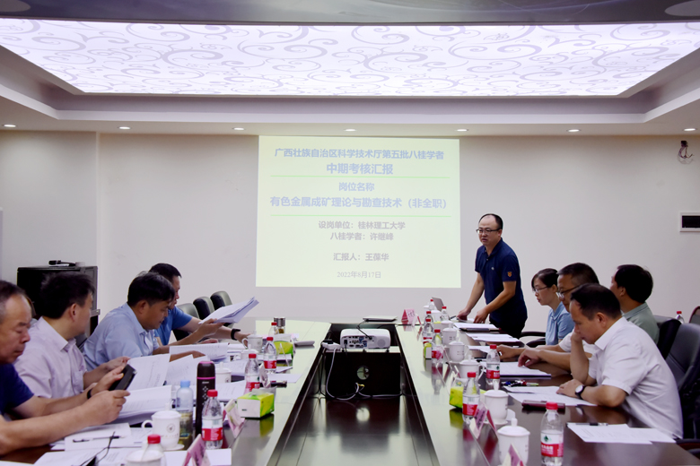 8月17日-18日,受自治區(qū)科技廳委托,廣西經濟社會技術發(fā)展研究所組織專家組一行8人來我校開展第四批八桂學者期滿考核以及第五批八桂學者中期考核實地核查工作。學校黨委常委、副校長王敦球出席會議。人事處(人才辦)、科技處、財務處、測繪地理信息學院、地球科學學院、環(huán)境科學與工程學院、材料科學與工程學院相關負責人以及八桂學者團隊骨干成員參加考核實地核查工作。