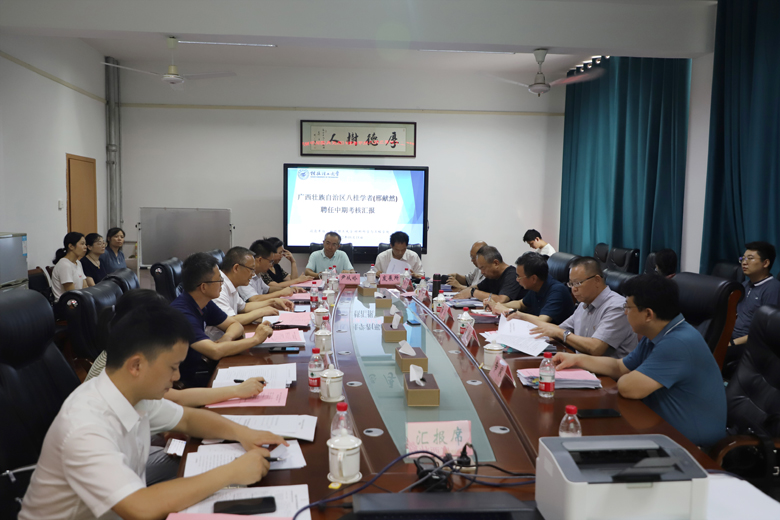 受考核的八桂學者團隊圍繞崗位考核要求匯報了履職履約情況。專家組對各團隊相關實驗基地、平臺進行了核查,并組織開展了現場評議、評估審查等工作。