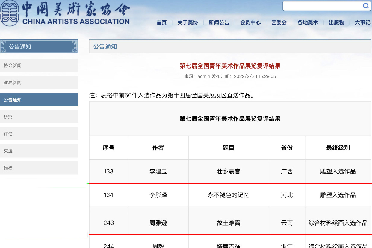 第七屆全國(guó)青年美術(shù)作品展覽復(fù)評(píng)結(jié)果