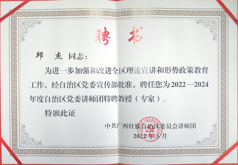 我校邱杰教授獲聘2022—2024年度自治區(qū)黨委講師團(tuán)特聘教授(專家)