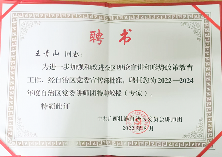 我校王青山教授獲聘2022—2024年度自治區(qū)黨委講師團(tuán)特聘教授(專家)