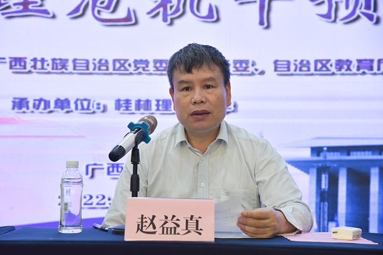 自治區(qū)教育廳二級(jí)巡視員、思想政治工作處處長、自治區(qū)黨委教育工委宣傳部部長趙益真在開班儀式上講話