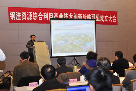 2012年12月29日,鋼渣資源綜合利用產(chǎn)業(yè)技術(shù)創(chuàng)新戰(zhàn)略聯(lián)盟成立大會、鋼渣聯(lián)盟第一屆理事會暨鋼渣資源綜合利用技術(shù)研討會在北京成功召開。國家發(fā)改委、工信部、科技部、中鋼協(xié)、廢鋼協(xié)以及來自企業(yè)、科研院校等100多名領(lǐng)導、專家參加了此次大會。 鋼渣資源綜合利用產(chǎn)業(yè)技術(shù)創(chuàng)新戰(zhàn)略聯(lián)盟是由科技部中國生產(chǎn)力促進中心協(xié)會、鞍鋼集團礦渣開發(fā)公司、上海寶鋼新型材料科技有限公司、包鋼集團冶金渣綜合利用開發(fā)有限責任公司、武鋼集團有限公司、北京中冶設(shè)備研究設(shè)計總院、北京科技大學、西安建筑科技大學、桂林理工大學、武漢理工大學和科技部《中國新技術(shù)新產(chǎn)品》雜志社等單位共同發(fā)起成立,是為了進一步推動我國鋼渣綜合利用產(chǎn)業(yè)技術(shù)的原始創(chuàng)新、集成創(chuàng)新和引進吸收再創(chuàng)新,進一步促進產(chǎn)學研緊密融合,整合鋼渣資源綜合利用產(chǎn)業(yè)的優(yōu)質(zhì)技術(shù)資源而構(gòu)建的產(chǎn)業(yè)技術(shù)創(chuàng)新平臺。 在會上,我校被選為常務(wù)理事單位,陳平研究員被選為“鋼渣資源綜合利用產(chǎn)業(yè)技術(shù)創(chuàng)新戰(zhàn)略聯(lián)盟首屆專家委員會委員”并作了題為“鋼渣、鐵合金渣礦粉的工業(yè)化生產(chǎn)成套技術(shù)及工程應(yīng)用”的學術(shù)報告。 鋼渣聯(lián)盟的成立,將進一步提高我國鋼渣資源綜合利用產(chǎn)業(yè)技術(shù)創(chuàng)新的能力,依靠科技進步,堅持工藝創(chuàng)新,加快鋼渣高附加值產(chǎn)品研發(fā)步伐,推進生態(tài)文明建設(shè),推動我國鋼鐵冶金工業(yè)及相關(guān)產(chǎn)業(yè)可持續(xù)發(fā)展,打造我國鋼渣資源綜合利用產(chǎn)業(yè)技術(shù)創(chuàng)新的服務(wù)平臺。
