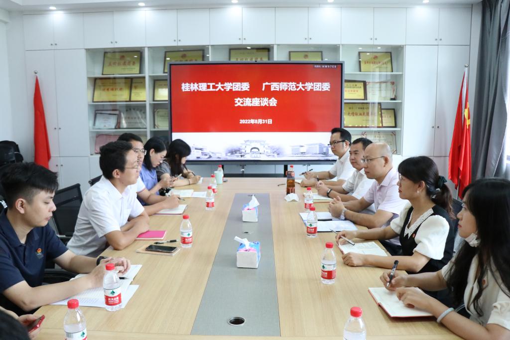 為進(jìn)一步推進(jìn)學(xué)校共青團(tuán)工作發(fā)展,8月31日上午,校團(tuán)委李雨書記帶隊(duì)赴廣西師范大學(xué)開展共青團(tuán)工作交流。兩校共青團(tuán)干部代表在廣西師范大學(xué)雁山校區(qū)行政北樓246會(huì)議室進(jìn)行座談。