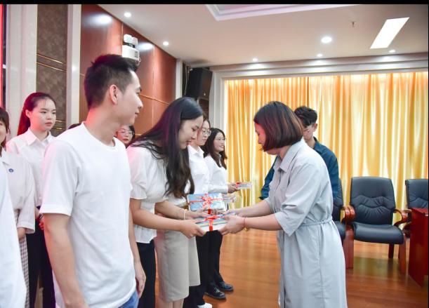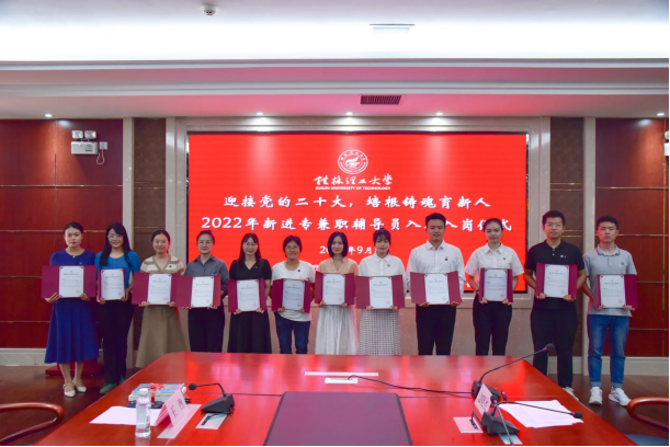 為新進專職輔導(dǎo)員代表頒發(fā)入職紀念證書